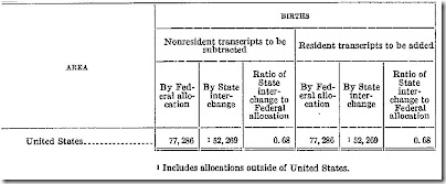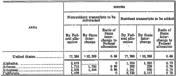 One such table of this data can be seen in the Vital Statistics of the U.S. Report in 1945 which shows there were 52,269 “Resident Transcripts” added to the natal statistics data in the U.S. while the balance of the same number of non-resident transcripts were subtracted. These transcripts were those natal statistics from births which occurred outside of the United States, but which were reported (on the U.S. “Certificate of Live Birth”), filed and allocated to a place of residence in the U.S. The table explicitly cites under footnote 1 that these transcripts include “allocations of births which occurred outside of the United States.” [this is not true either]