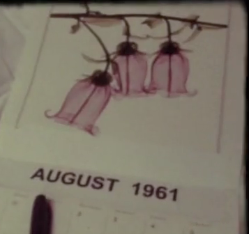 • Calendar on the wall marked, but later in the video not marked? He said that maybe there were two calendars, the second shot done because the first was fuzzy. (Of course no one could know that the first one was fuzzy until after the film was developed days later.)