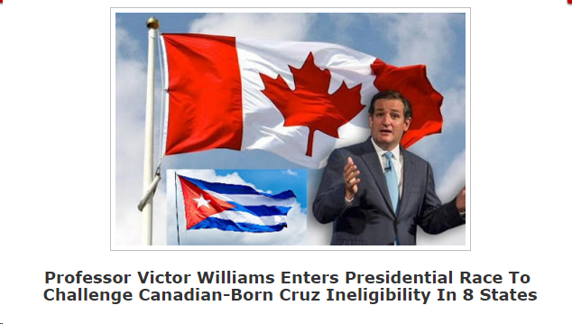 “He [Victor Williams] claims Cruz ‘has fraudulently represented himself as constitutionally qualified for the office of president’ and argues that Cruz, who became a naturalized U.S. citizen in 2014, does not meet the Constitution’s requirement to be a ‘natural born citizen.'”